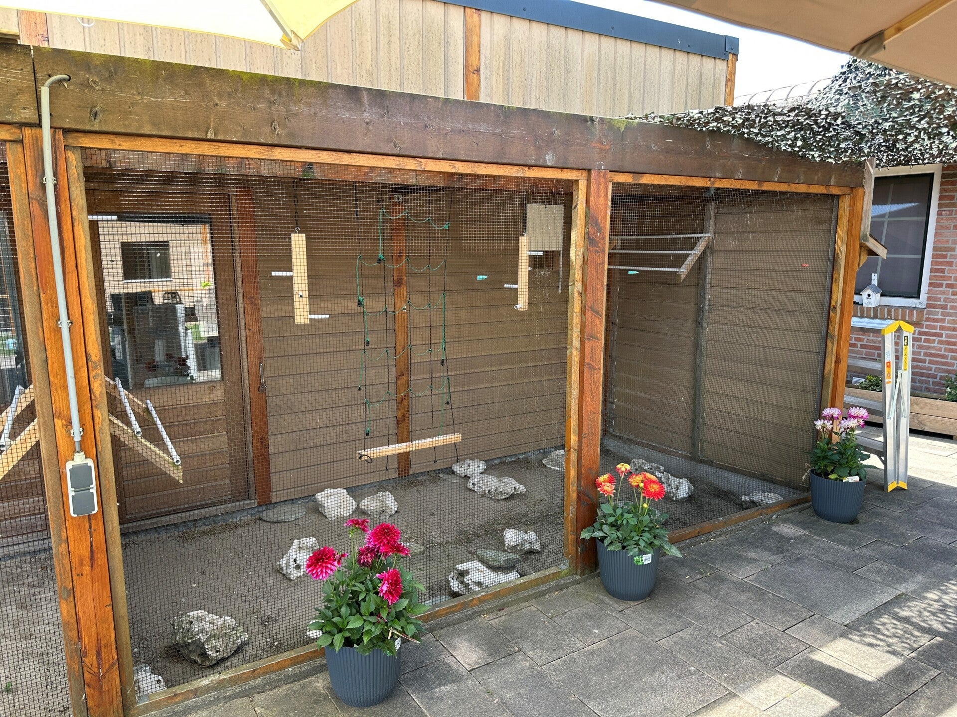 - Voorzie de volière met een tochtvrij en het liefst verwarmd nachthok